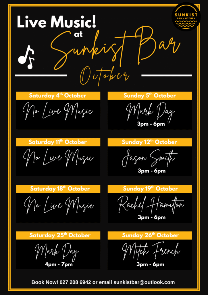 To make a reservation, please click below or email us at: reservationsatsunkistbar@outlook.co.nz